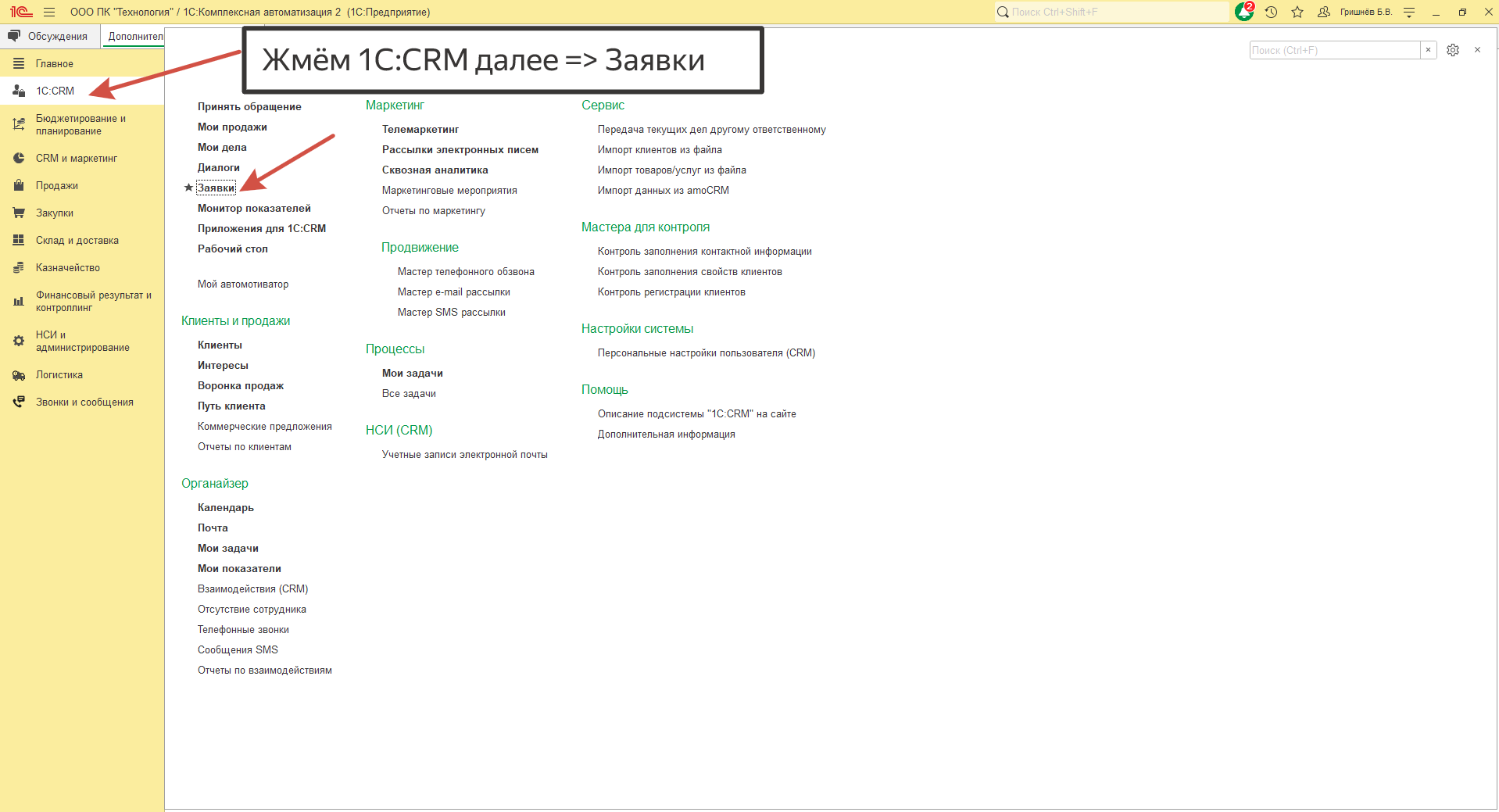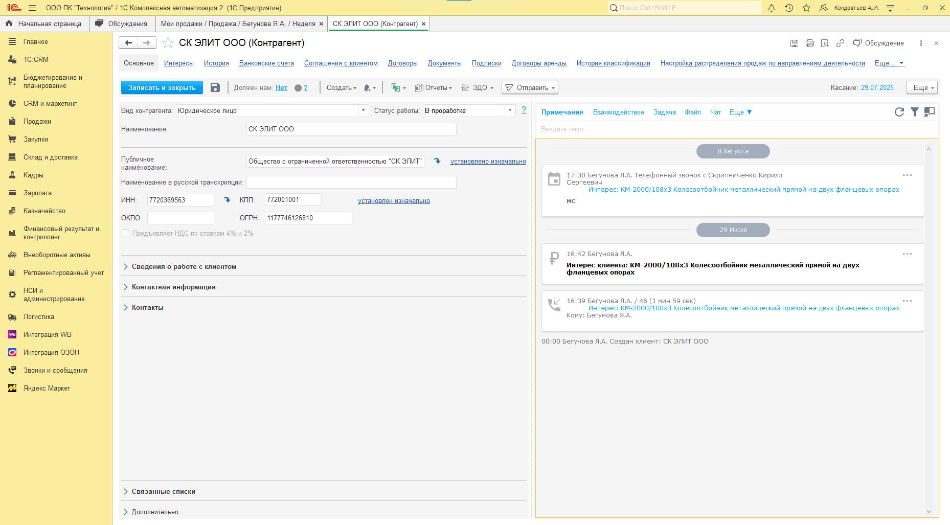 База клиента, сфера деятельности, отдел и прочая информация
