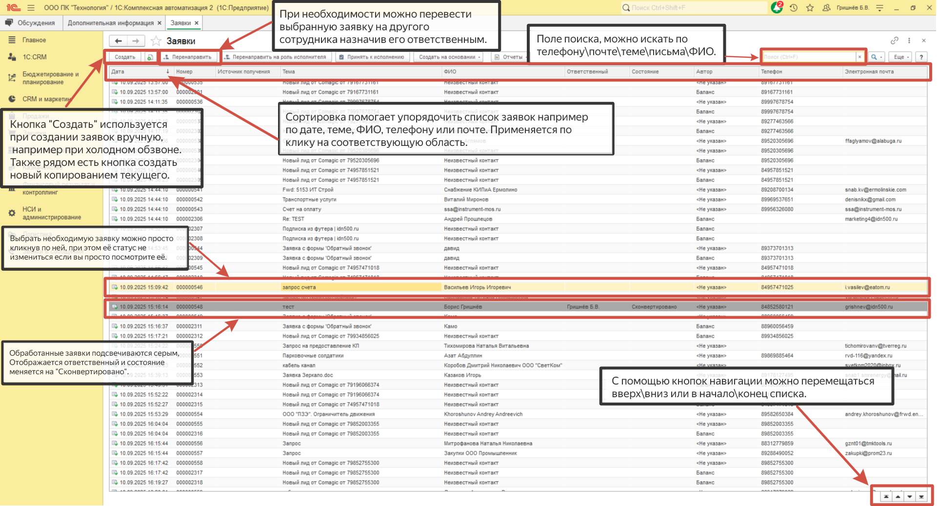Список контактов компании